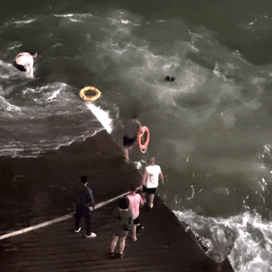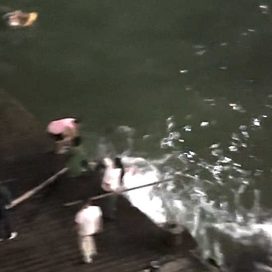 最后,在岸上群眾的協(xié)助下
