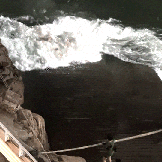 由于海浪洶涌
